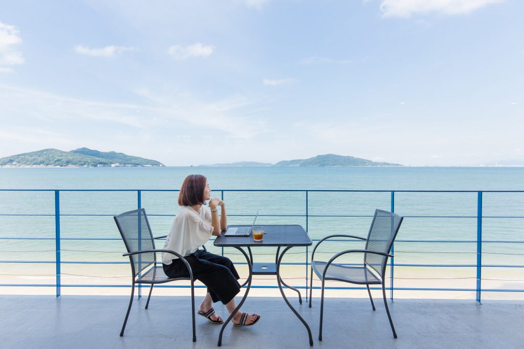 オフィスを離れ海の見えるコワーキングスペースへ…