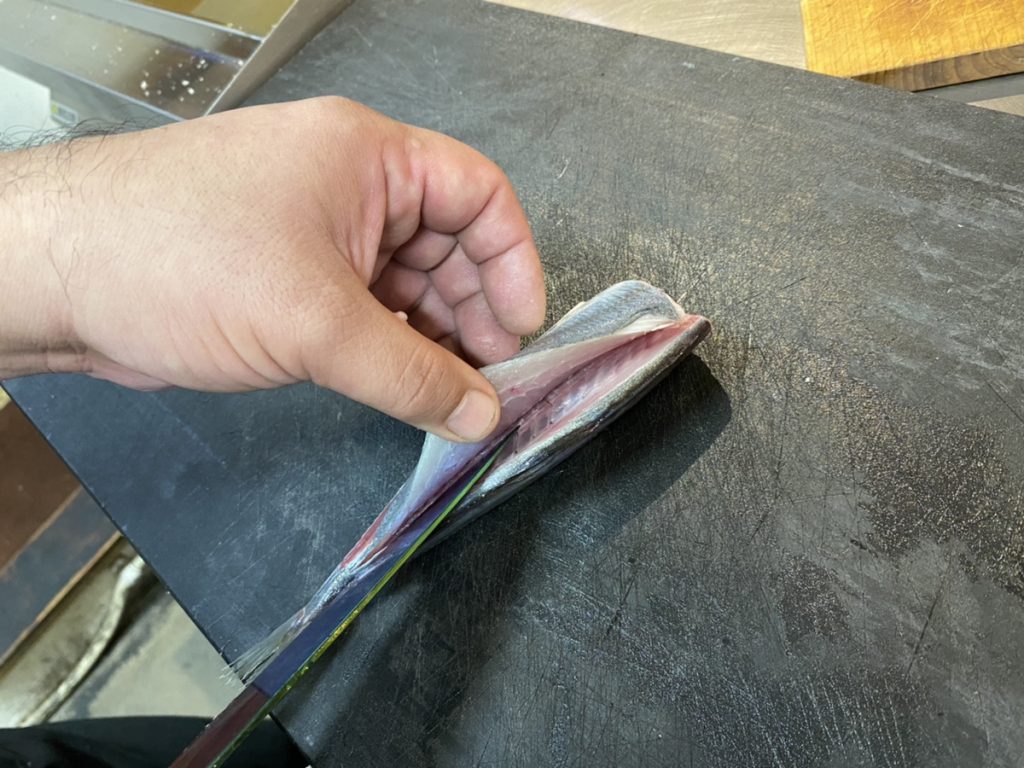 ⑦反対側も同じように背→腹骨と中骨を切り離す→腹側を捌く工程を行う