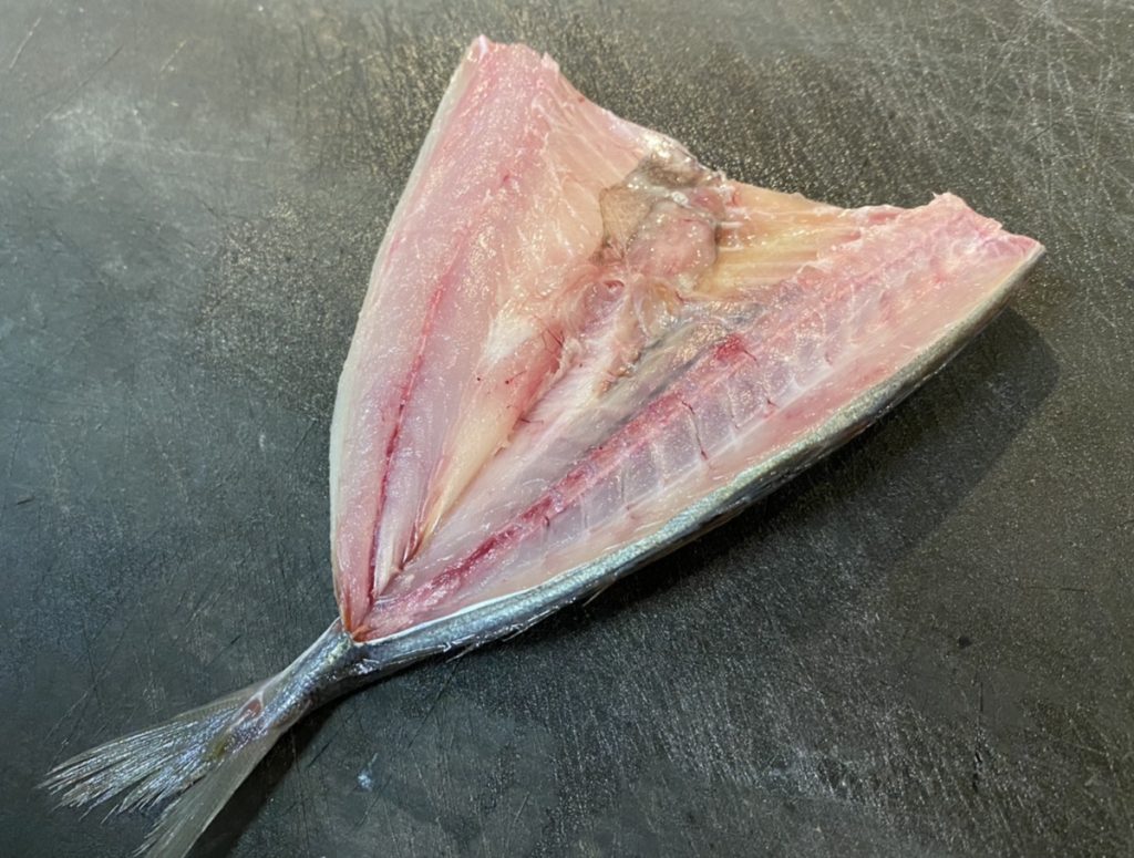 腹開きでも同じような形になりますが、背びれが残り口に刺さってしまう可能性があるためおろす作業プラス背びれを切り取る工程がある、というところと、仕上がりのフォルムが少しいびつになります。