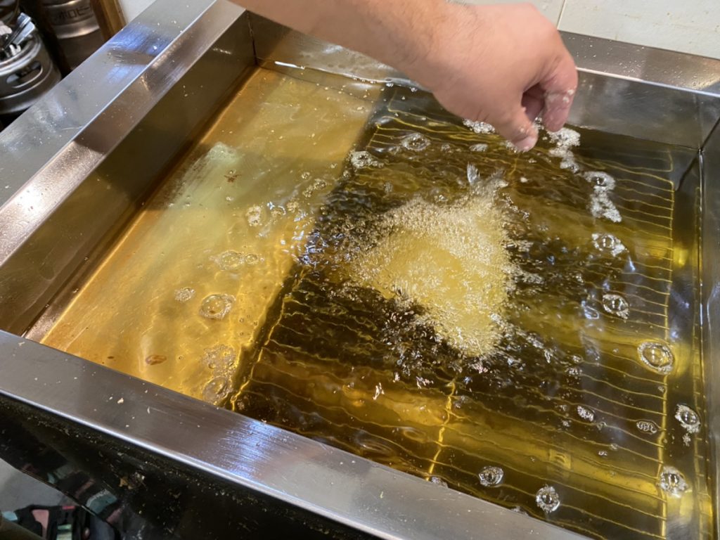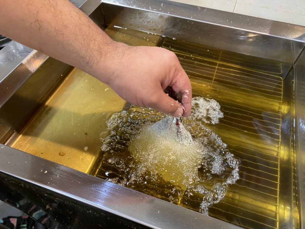 揚げ時間の半分を過ぎたらひっくり返しましょう。