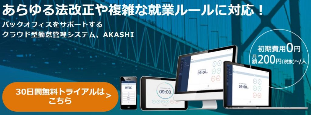 今なら、AKASHIのサービスを最大30日間無料でお試しいただける無料トライアルを実施していますので、ぜひお試しください。
