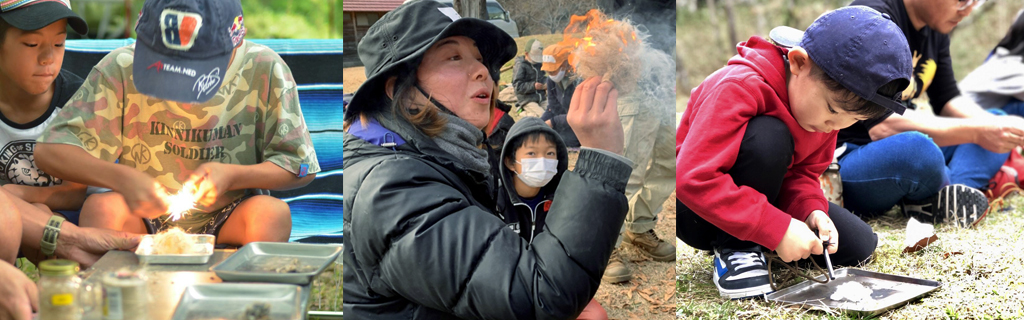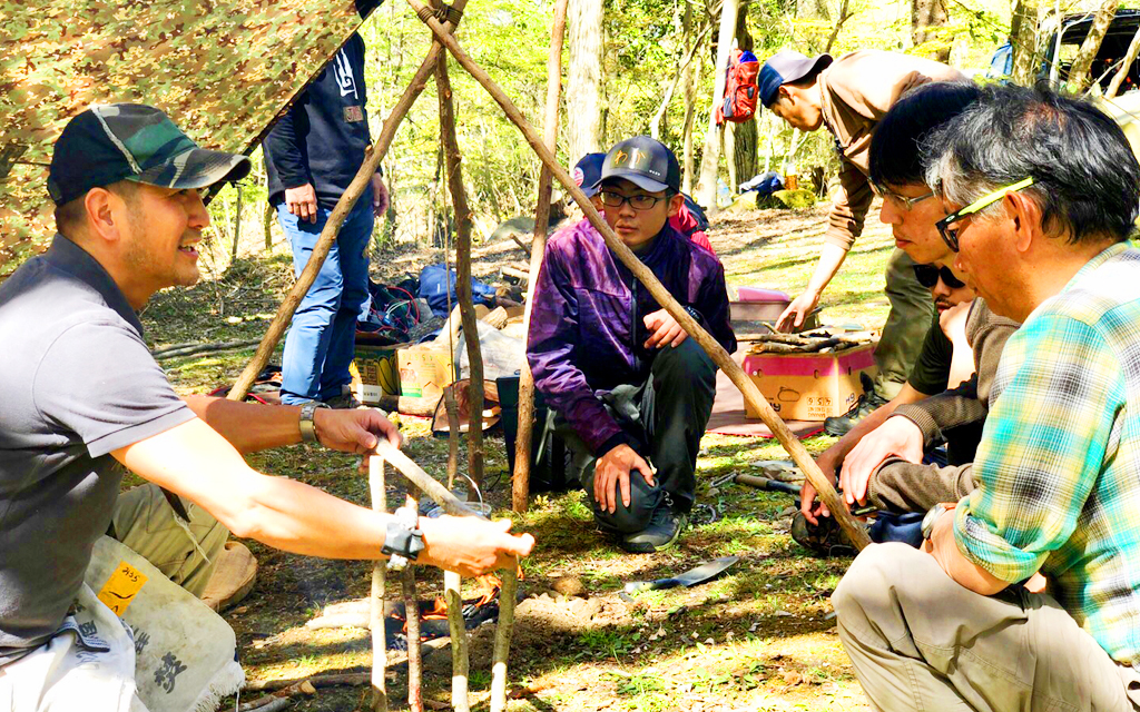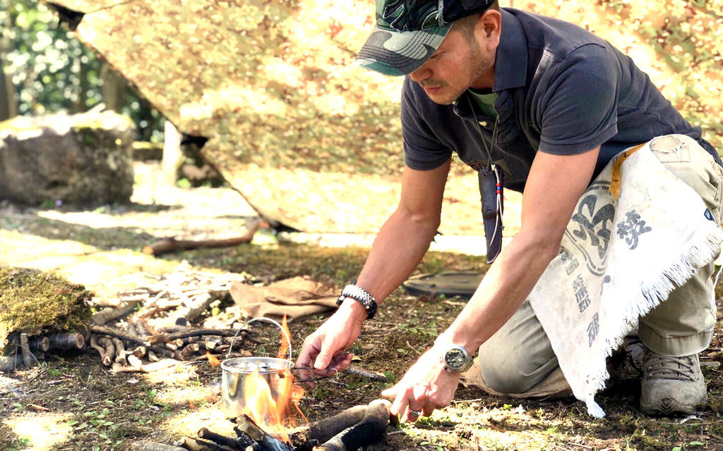「道具を極力使わないブッシュクラフトは、有事の際の状況下では大変心強いものです。知識と技術を手にすることで、パニックにならず、ご自身だけでなく、家族や仲間を少しでも安心させる場を確保していただければと思います。」