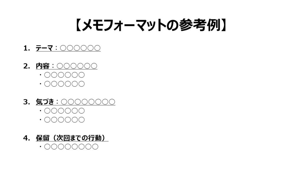 最後に、1on1を形骸化させないために、毎回メモを取ることを忘れないでください。(メンター、従業員両方とも)