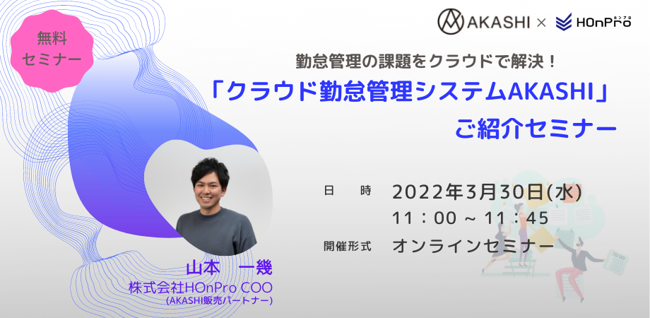 - 勤怠管理の課題をクラウドで解決!「クラウド勤怠管理システムAKASHI」ご紹介セミナー(3/30)