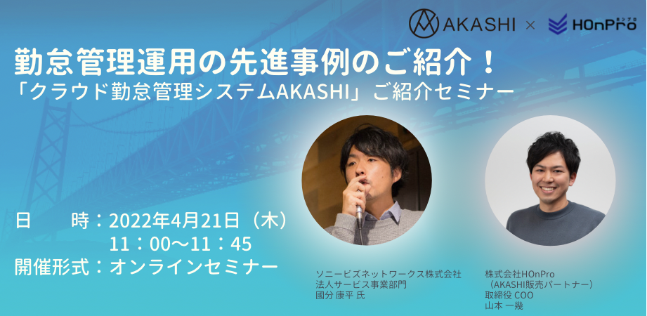 - 勤怠管理運用の先進事例のご紹介!「クラウド勤怠管理システムAKASHI」ご紹介セミナー(4/21)