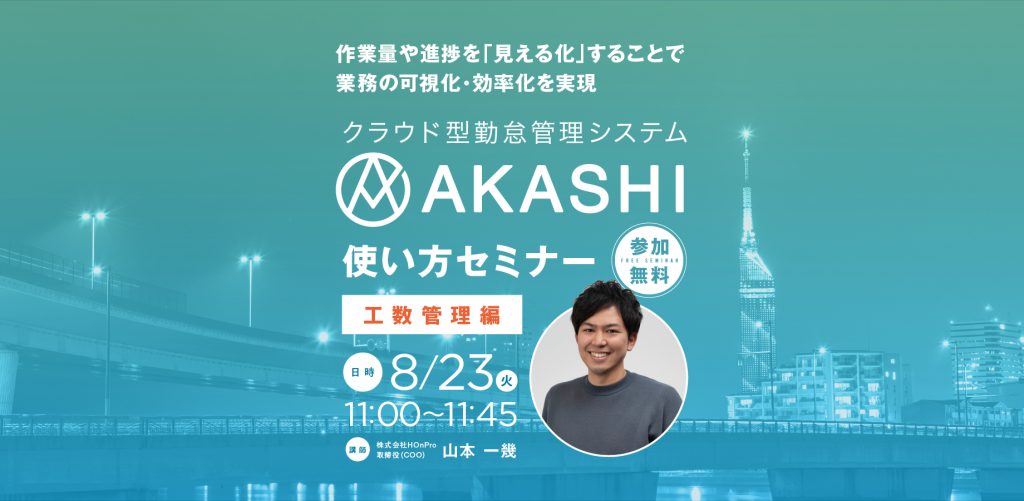 - 【8/23開催】 クラウド型勤怠管理システム『AKASHI』使い方セミナー【工数管理編】