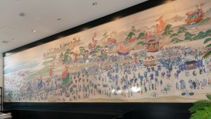 “唐津くんち”の7枚続きの襖絵を模した描画が1Fに飾られています