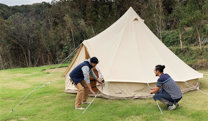 自分たちでテントを張るところから体験することができます。