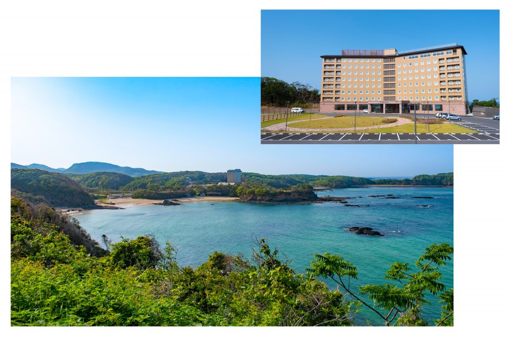 「東横インって駅前にあるホテルだよね」…そんな概念を見事に覆してくれるのが、海のほど近くに立つ「東横イン対馬比田勝(ひたかつ)」。本ホテル初のリゾートタイプとして、2019年9月にオープンしました。景観を楽しめるように設えられた広い客室の大きな窓からは水平線からのご来光も望め、ビジネスホテルとは思えない開放感です。隣接する上対馬温泉「渚の湯」や、ホテルから徒歩圏内にある白い砂浜とエメラルドグリーンの水面が眩しい「三宇田浜(みうだはま)海水浴場」、「三宇田浜キャンプ場」も併せて利用すれば、より充実した時間を過ごすことができそうです。